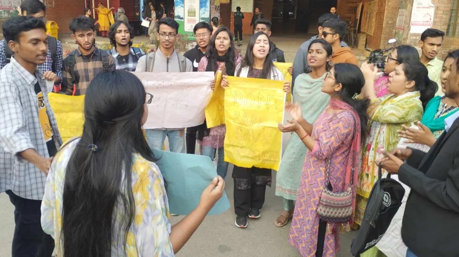 মানববন্ধন ও বিক্ষোভ কর্মসূচি চলাকালে শিক্ষার্থীরা ধর্ষণ ও নিপীড়ন বিরোধী স্লোগান দেন শিক্ষার্থীরা। এ সময় আন্তর্জাতিক সম্পর্ক বিভাগের শিক্ষার্থী ইব্রাহিম মৃধা বলেন, যারা ধর্ষকদের আশ্রয় ও প্রশ্রয়দাতা তাদের আমরা হুঁশিয়ার করে দিতে চাই। এ ধরনের ঘটনার জন্য বিশ্ববিদ্যালয়ের সুনাম ক্ষুণ্ণ হয়েছে। প্রশাসনের কাছে দাবি থাকবে যে, যেসব শাস্তি ধর্ষকদের দেওয়া হয়েছে তার যেন যথাযথ বাস্তবায়ন হয়। তা নাহলে আরও কঠোর আন্দোলন গড়ে তোলা হবে।