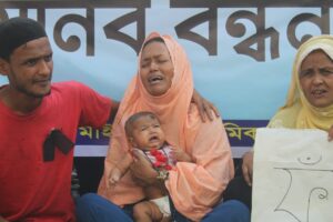 মানববন্ধনে গাড়ি চালক রুবেল খানের মা-বাবা, ভাই,স্ত্রী-সন্তান সহ পরিবারের স্বজনরা