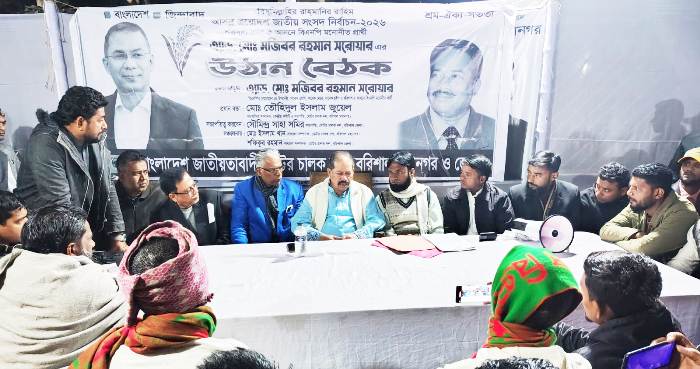 ২৮ জানুয়ারী,বুধবার সন্ধ্যায় উঠান বৈঠকে প্রধান অতিথি হিসেবে উপস্থিত ছিলেন বিএনপির প্রার্থী অ্যাডভোকেট মজিবর রহমান সরোয়ার। প্রধান বক্তা হিসেবে উপস্থিত ছিলেন মোটর চালক দল কেন্দ্রীয় কমিটির সাংগঠনিক সম্পাদক ও বরিশাল মহানগর সভাপতি মোঃ তৌহিদুল ইসলাম জুয়েল।