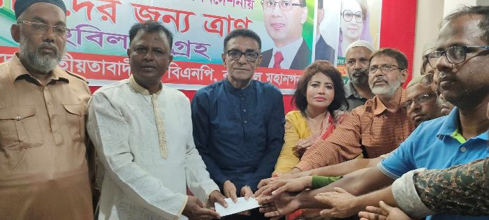 এরপর নগরীর ২৩ নম্বর ওয়ার্ড বিএনপির পক্ষে আহ্বায়ক সাজ্জাদ হোসেন ও সদস্য সচিব কামাল হাওলাদার অর্থ সহায়তা করেন।