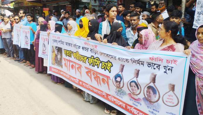 বক্তারা অবিলম্বে হত্যাকারী দোষীদের গ্রেফতার ও দৃষ্টান্তমূলক শাস্তির দাবি জানান। পুলিশ প্রশাসনের নিষ্ক্রিয়তায় উদ্বেগ প্রকাশ করে বক্তারা বলেন, অবিলম্বে দোষীদের গ্রেফতার করা না হলে বরিশালের সাধারণ মানুষকে সাথে নিয়ে নিয়মতান্ত্রিক আন্দোলন গড়ে তোলা হবে। বিচারহীনতার সংস্কৃতি থেকে বেরিয়ে নারী নির্যাতন-হত্যা বন্ধে সংশ্লিষ্ট প্রশাসনকে সক্রিয় হাওয়ারও আহ্বান জানানো হয়।
