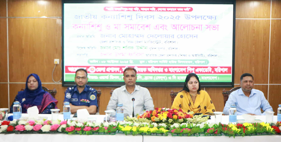 ৮ অক্টোবর,বুধবার সকাল ১০ টায় সার্কিট হাউজ এর সম্মেলন কক্ষে জেলা প্রশাসন,মহিলা বিষয়ক অধিদপ্তর ও বাংলাদেশ শিশু একাডেমি বরিশাল এর আয়োজনে জাতীয় কন্যাশিশু দিবস উপলক্ষ্যে কন্যাশিশু ও মা সমাবেশ এবং আলোচনা সভা অনুষ্ঠিত হয়।
