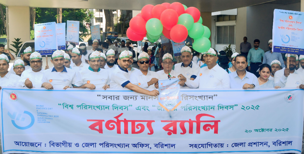 সবার জন্য মানসম্মত পরিসংখ্যান এই স্লোগান নিয়ে বরিশালে বিশ্ব পরিসংখ্যান দিবস এবং জাতীয় পরিসংখ্যান দিবস ২০২৫ উপলক্ষ্যে অলোচনা সভা অনুষ্ঠিত হয়েছে।