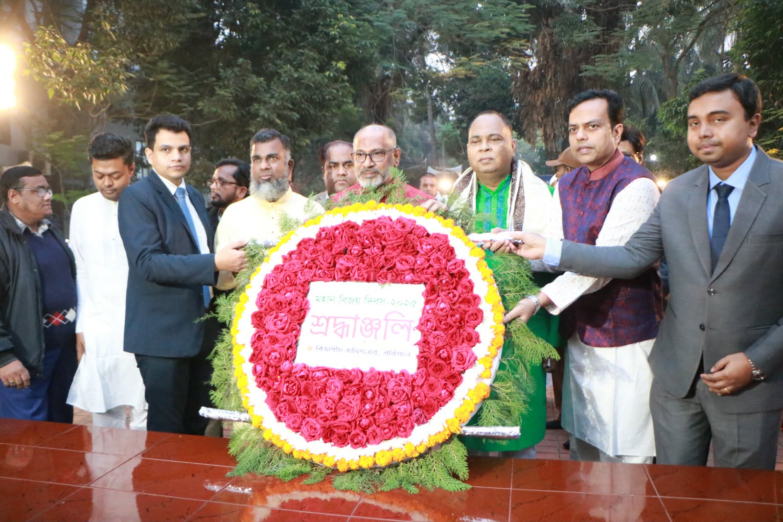 ১৬ ডিসেম্বর,সোমবার সূর্যোদয়ের সাথে সাথে শহীদ মুক্তিযোদ্ধা স্মৃতি ফলকে বিভাগীয় ও জেলা প্রশাসন বরিশালের নেতৃত্বে জেলা প্রশাসকের কার্যালয় সংলগ্ন শহীদ মুক্তিযোদ্ধা স্মৃতি ফলকে পুষ্পস্তবক অর্পণের মধ্যে দিয়ে মহান বিজয় দিবস এর শুভ সূচনা করা হয়।