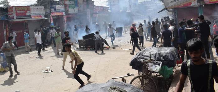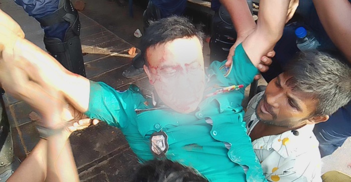 দফায় দফায় আন্দোলনকারীদের সাথে পুলিশের সংঘর্ষ- আহত পুলিশ কর্মকর্তা