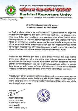 একইসাথে বরিশাল মহানগর বিএনপি সদস্য সচিব জিয়াউদ্দিন সিকদারের উচ্ছৃঙ্খল কার্যকলাপ ও আচরণের বিরুদ্ধে ঐক্যবদ্ধ হয়ে নগরীর সচেতন নাগরিকদের প্রতি প্রতিবাদ জানানোর উদাত্ত আহবান জানিয়েছেন বিআরইউ’র সভাপতি আনিসুর রহমান খান স্বপন ও সাধারণ সম্পাদক খালিদ সাঈদুল্লাহ সহ সদস্যবৃন্দ।